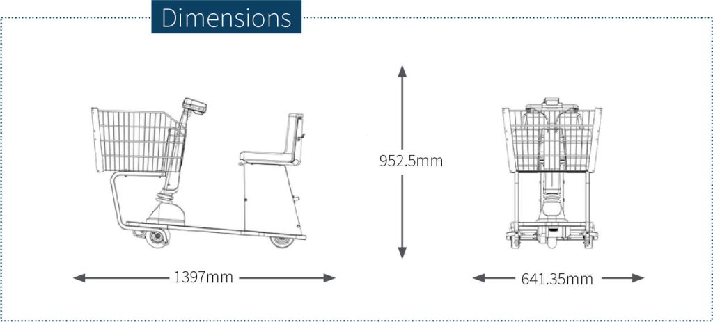 The motorised shopping cart features a front drive with a tight turning radius. The modular components reduce cart downtime and will save you money on repairs. With a safety seat switch, the cart will not move unless the driver is seated.