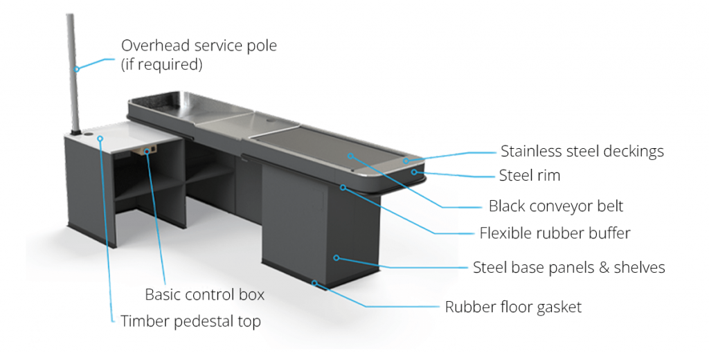 The Essentials Checkout has all the features of a traditional checkout, but with a smaller footprint, making it a viable option for small retailers, start-up businesses or larger retailers looking to add additional checkout areas quickly.