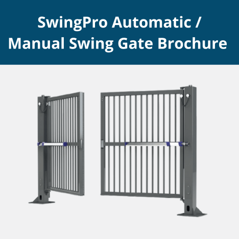 Our SwingPro is an automatic or manual swing gate with a maximum span of 14m and a height of 5 metres for pedestrian and vehicular access. The swing gate is supplied with dig-in or bolt-down posts making it ideal where there is plenty of space to open in front of the gate but no extra space to the side.